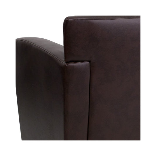 Black Mesh Sled Base Side Reception Chair with White Stitched LeatherSoft Seat and Flip-Up Arms