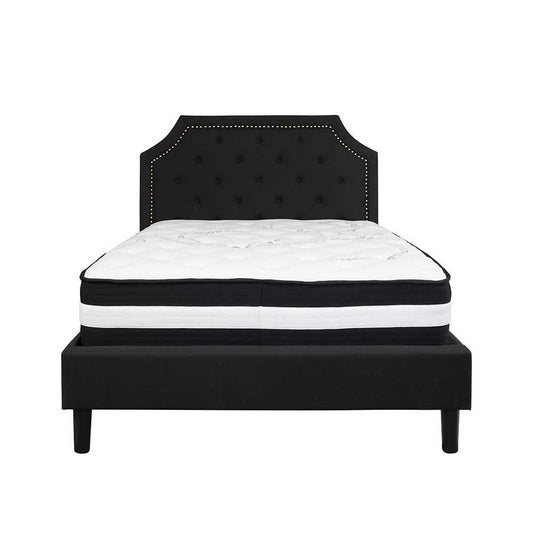 Brighton Full Size Tufted Upholstered Platform Bed in Black Fabric with Pocket Spring Mattress
