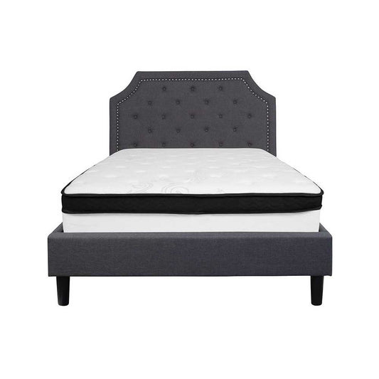 Brighton Full Size Tufted Upholstered Platform Bed in Dark Gray Fabric with Memory Foam Mattress
