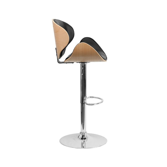 Beech Bentwood Adjustable Height Barstool with Curved Back and Black Vinyl Seat