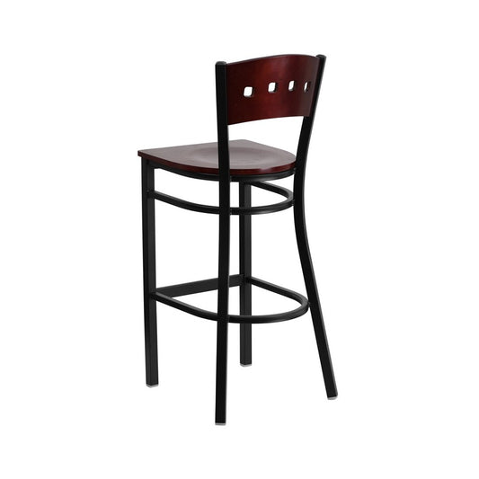 Black 4 Square Back Metal Restaurant Barstool - Mahogany Wood Back & Seat