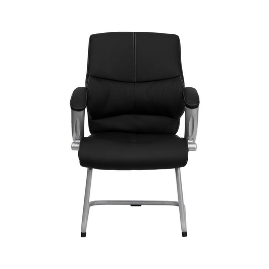Black LeatherSoft Executive Side Reception Chair with Silver Sled Base