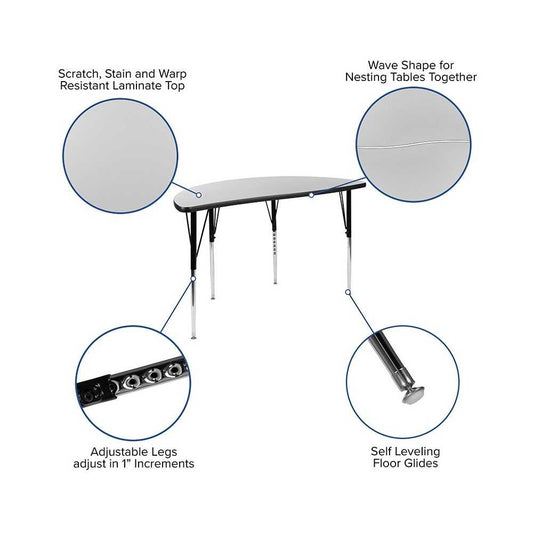 76" Oval Wave Collaborative Laminate Activity Table Set with 18" Student Stack Chairs, Gray/Black