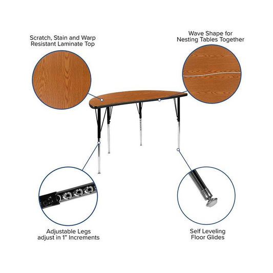 76" Oval Wave Collaborative Laminate Activity Table Set with 18" Student Stack Chairs, Oak/Black