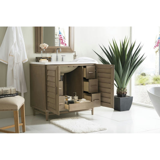 Portland 36" Single Vanity Whitewashed Walnut, w/ 3 CM Eternal Serena Quartz Top