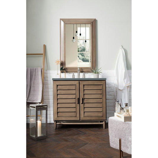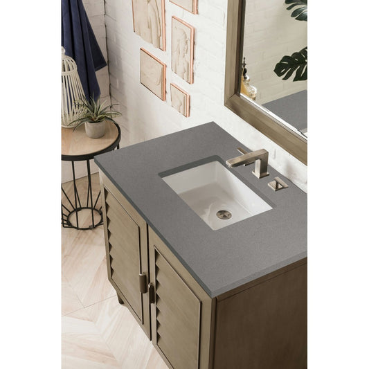Portland 36" Single Vanity Whitewashed Walnut, w/ 3 CM Gray Expo Quartz Top