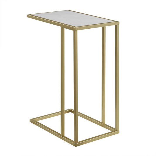 Modern Glam 2-Piece C-Table with Metal Base - Faux White Marble and Gold