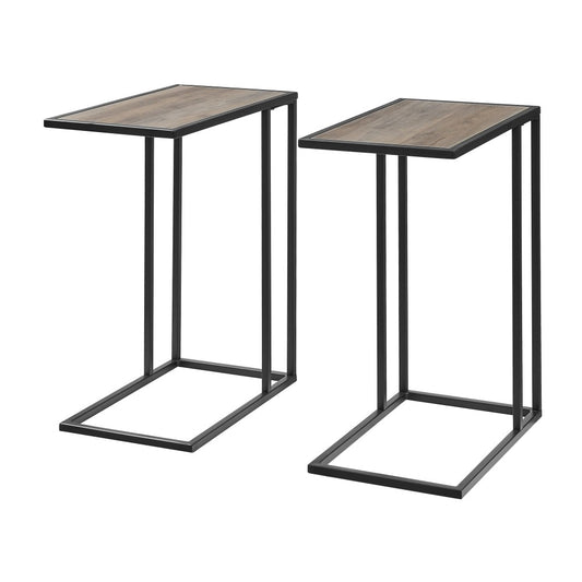 Modern Industrial 2-Piece Metal Wrap Side Table Set - Slate Gray
