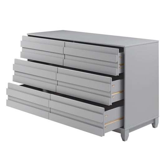 Modern Grooved Panel 6 Drawer Wood Dresser - Gray