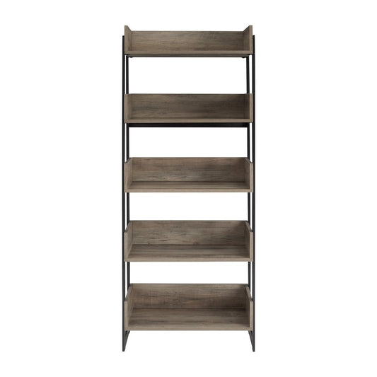 Morty 64" Metal and Wood 5 Shelf Bookshelf - Gray Wash