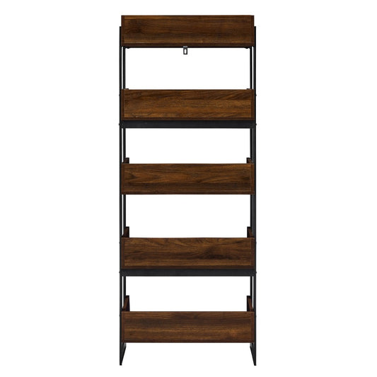 Morty 64" Metal and Wood 5 Shelf Bookshelf - Dark Walnut