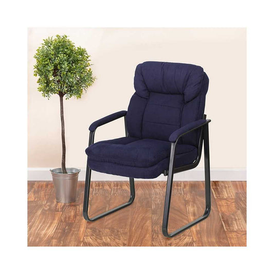 Navy Microfiber Executive Side Reception Chair with Lumbar Support and Sled Base