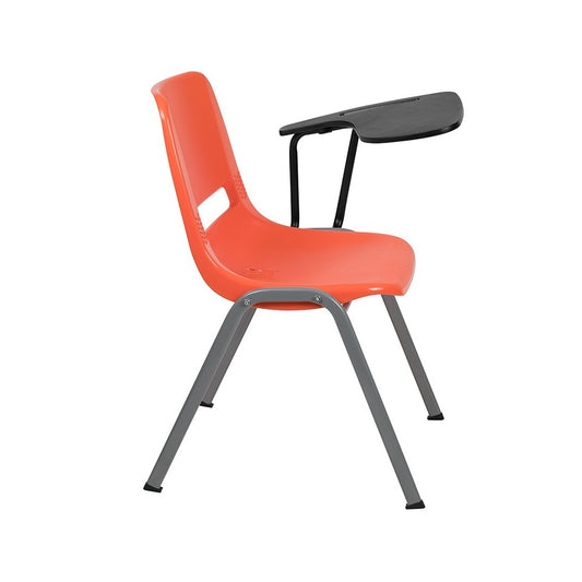 Orange Ergonomic Shell Chair with Left Handed Flip-Up Tablet Arm