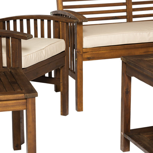 Modern Slat-Top Solid Acacia Wood Outdoor Coffee Table - Dark Brown