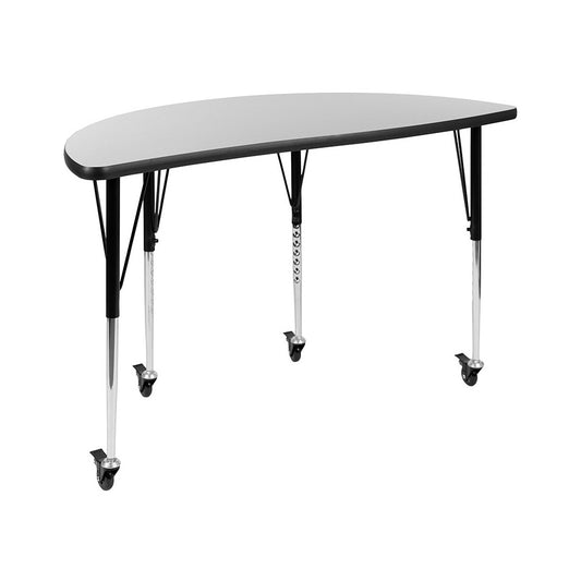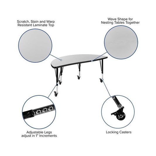 Mobile 48''W x 96''L Kidney Gray Thermal Laminate Activity Table - Standard Height Adjustable Legs