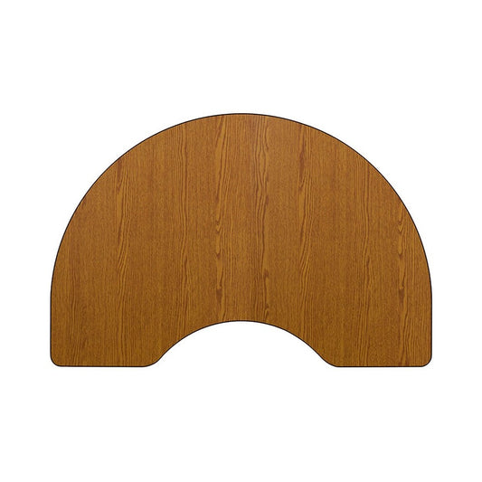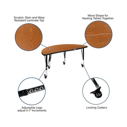 Mobile 48''W x 96''L Kidney Oak Thermal Laminate Activity Table - Standard Height Adjustable Legs