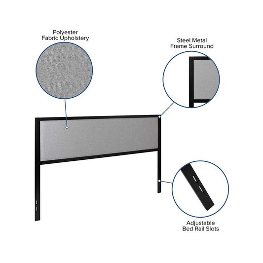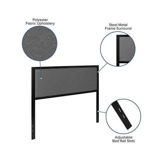 Melbourne Metal Upholstered Queen Size Headboard in Dark Gray Fabric