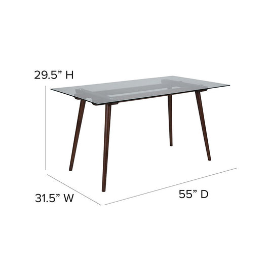 Meriden 31.5" x 55" Rectangular Solid Walnut Wood Table with Clear Glass Top