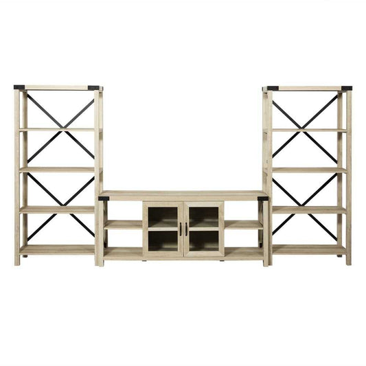 Metal X Accent Wall with 60" Glass Door TV Console - White Oak
