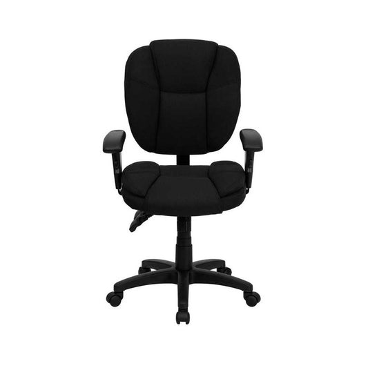Mid-Back Black Fabric Swivel Task Office Chair with Adjustable Arms