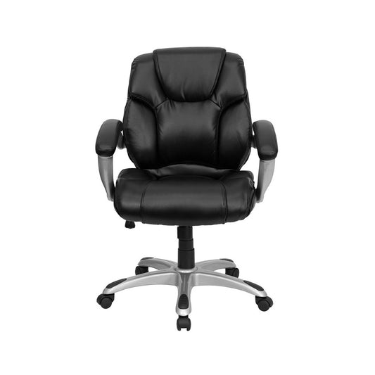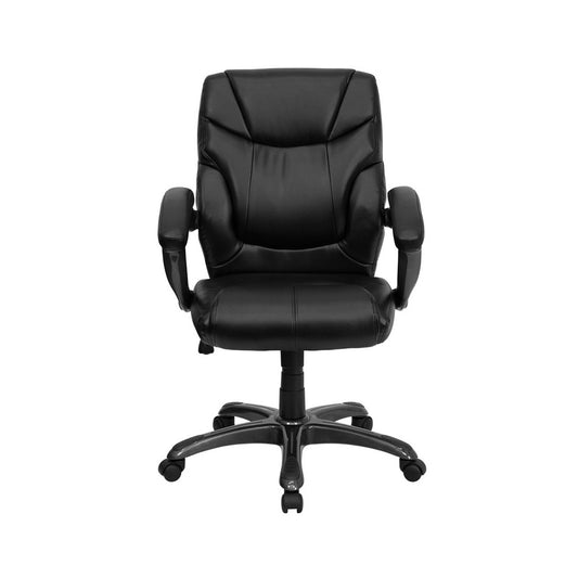 Mid-Back Black LeatherSoft Overstuffed Swivel Task Ergonomic Office Chair with Arms