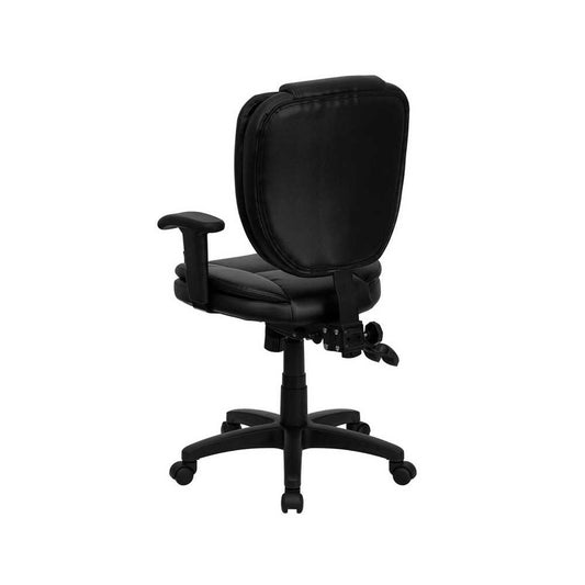 Mid-Back Black LeatherSoft Multifunction Swivel Ergonomic Task Office Chair with Pillow Top Cushioning and Arms