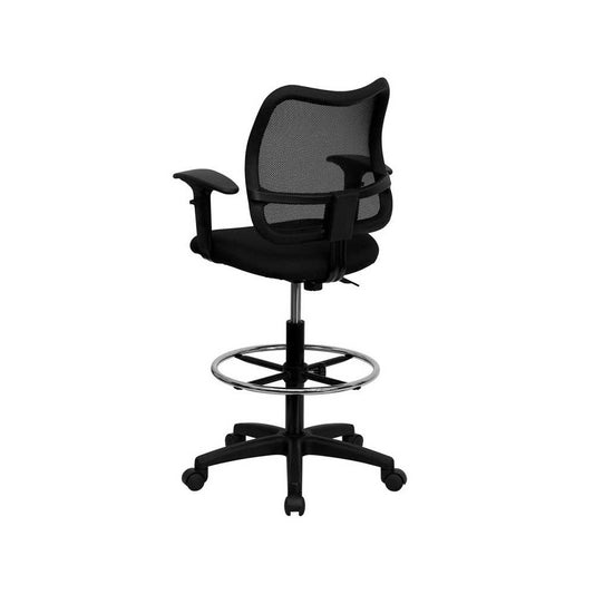 Mid-Back Black Mesh Drafting Chair with Adjustable Arms