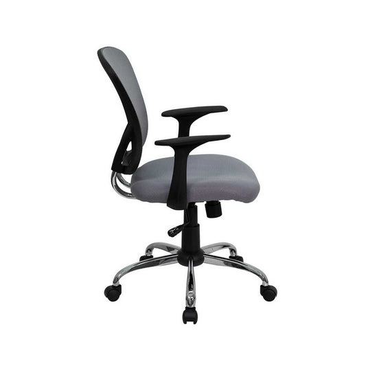 Mid-Back Gray Mesh Swivel Task Office Chair with Chrome Base and Arms