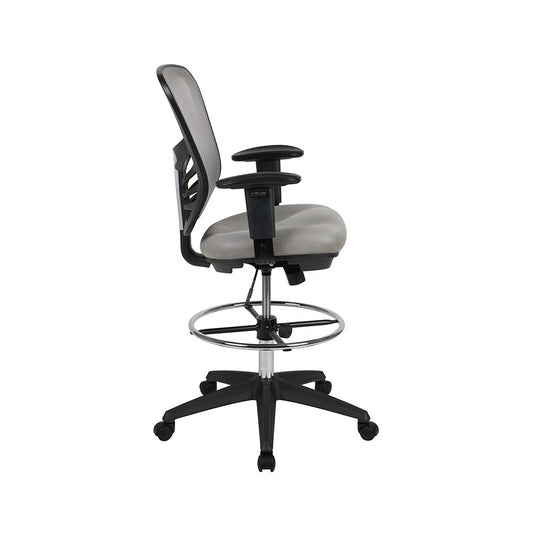 Mid-Back Light Gray Mesh Ergonomic Drafting Chair with Adjustable Chrome Foot Ring, Adjustable Arms and Black Frame