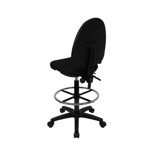 Mid-Back Black Fabric Multifunction Ergonomic Drafting Chair with Adjustable Lumbar Support
