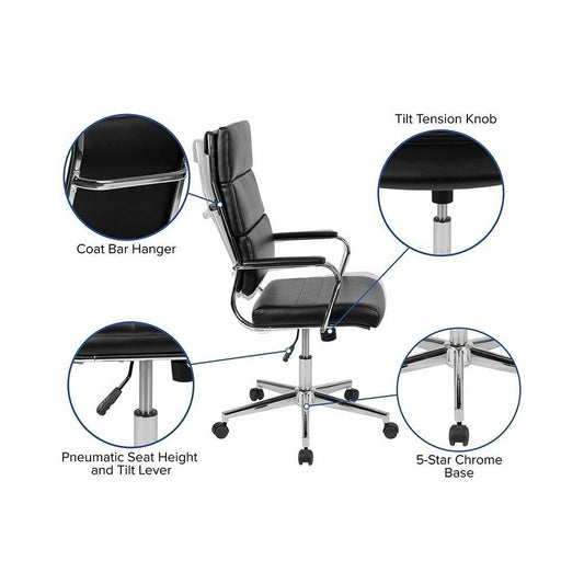 High Back Black LeatherSoft Contemporary Panel Executive Swivel Office Chair