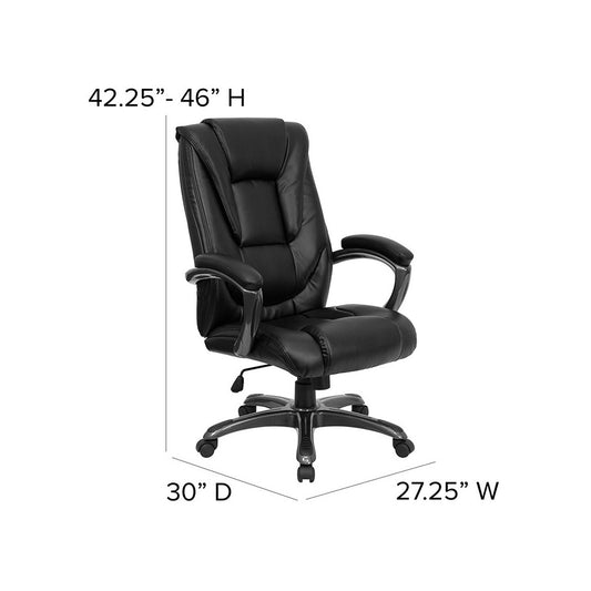 High Back Black LeatherSoft Executive Swivel Ergonomic Office Chair with Deep Curved Lumbar and Arms