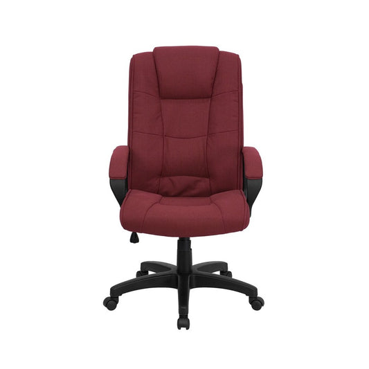 High Back Burgundy Fabric Executive Swivel Office Chair with Arms