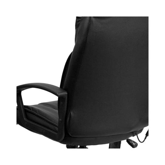 High Back Ergonomic Massaging Black LeatherSoft Executive Swivel Office Chair with Side Remote Pocket and Arms