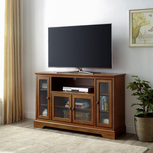 Highboy 52" Transitional Glass Wood TV Stand - Brown