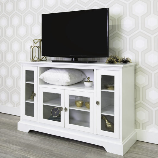 Highboy 52" Transitional Glass Wood TV Stand - White