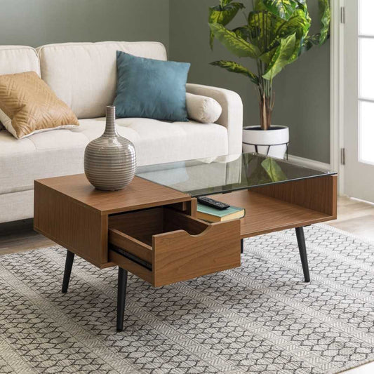 Juniper Mid Century Modern Wood and Glass Coffee Table - Pecan