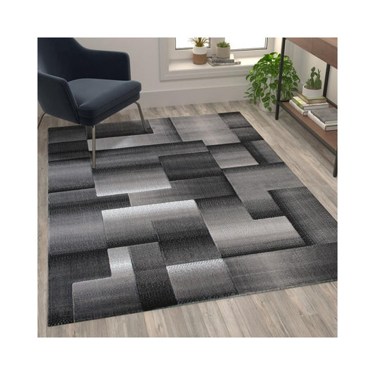 Flash Furniture Elio Collection 5x7 Gray Block Area Rug ACD-RGTRZ861-57-GY-GG