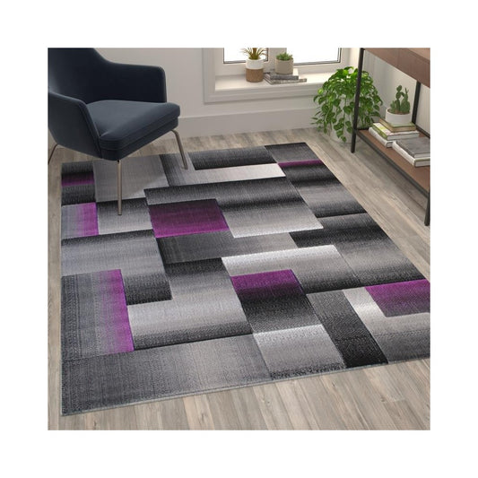 Flash Furniture Elio Collection 5x7 Purple Block Area Rug ACD-RGTRZ861-57-PU-GG