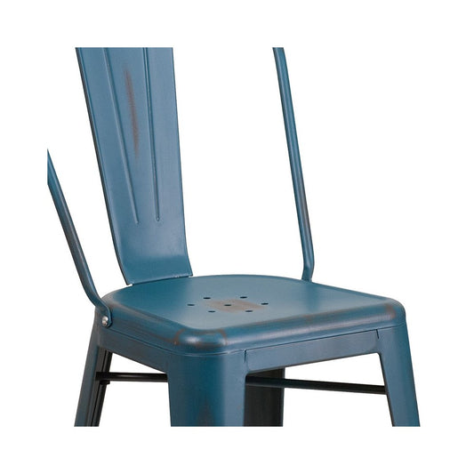 Commercial Grade 24" High Distressed Antique Blue Metal Indoor-Outdoor Counter Height Stool with Back