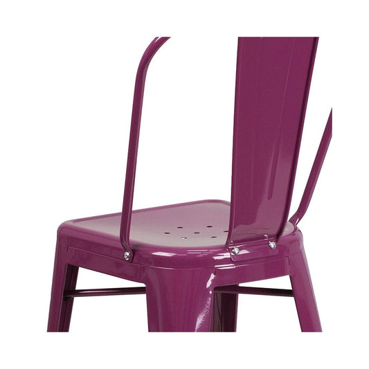 Commercial Grade 24" High Purple Metal Indoor-Outdoor Counter Height Stool with Back
