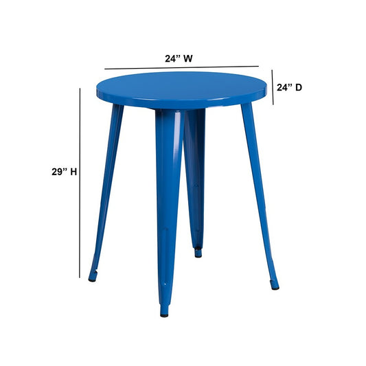 Commercial Grade 24" Round Blue Metal Indoor-Outdoor Table