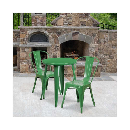 Commercial Grade 24" Round Green Metal Indoor-Outdoor Table Set with 2 Cafe Chairs