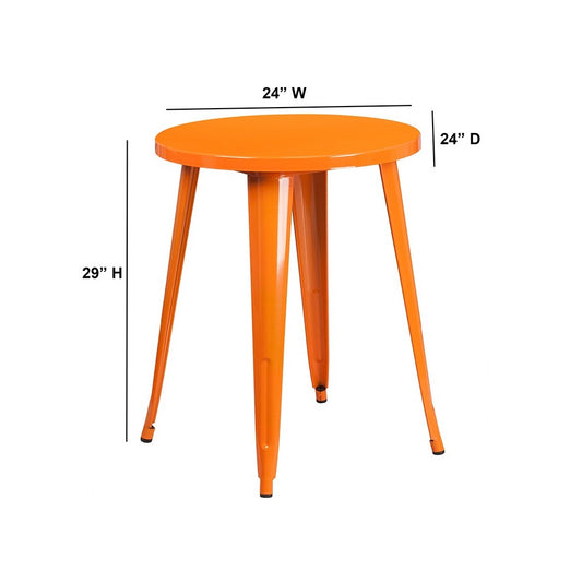 Commercial Grade 24" Round Orange Metal Indoor-Outdoor Table