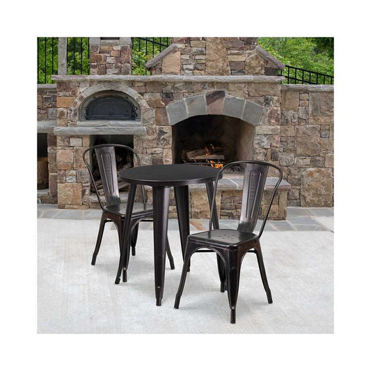 Commercial Grade 24" Round Black-Antique Gold Metal Indoor-Outdoor Table Set with 2 Cafe Chairs