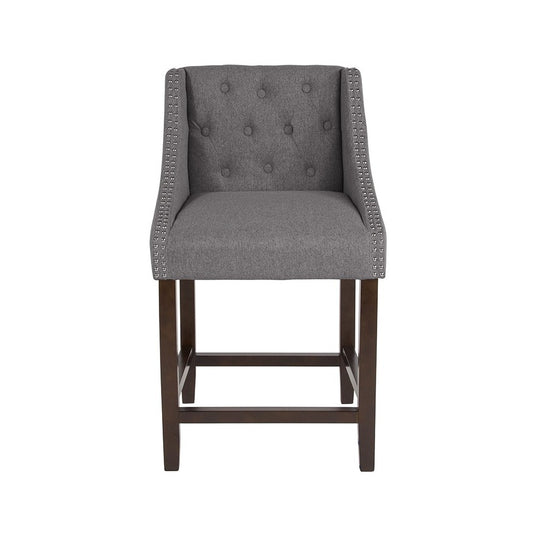 Carmel Series 24" High Transitional Tufted Walnut Counter Height Stool with Accent Nail Trim in Dark Gray Fabric
