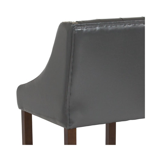 Carmel Series 24" High Transitional Tufted Walnut Counter Height Stool with Accent Nail Trim in Dark Gray LeatherSoft
