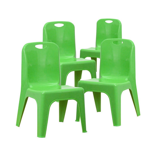4 Pack Green Plastic Stackable School Chair with Carrying Handle and 11'' Seat Height