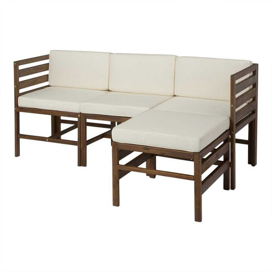 4-Piece Modular Acacia - 3 seat and Ottoman - Dark Brown