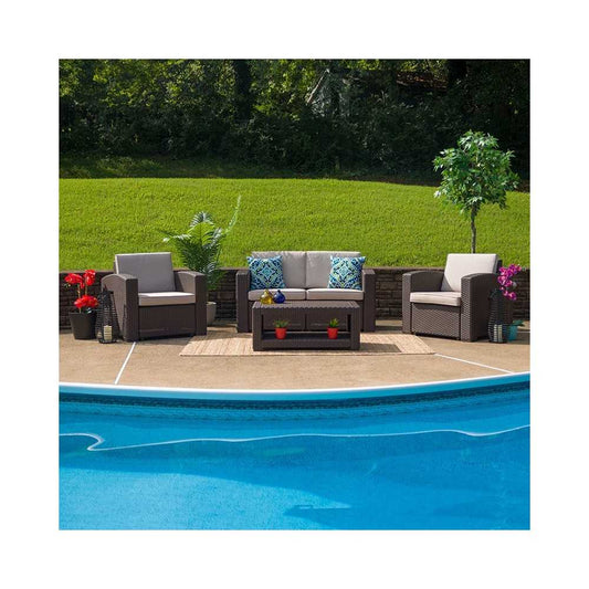 4 Piece Outdoor Faux Rattan Chair, Loveseat and Table Set in Chocolate Brown